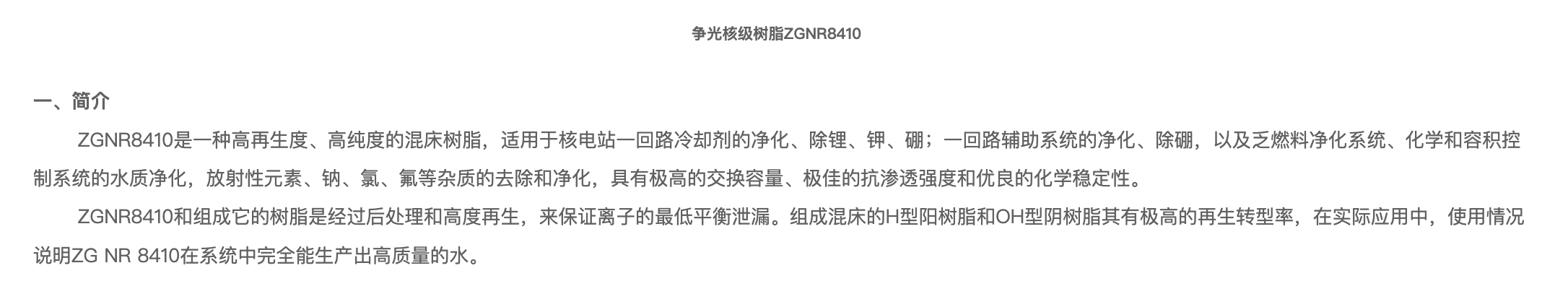 下一个: ZG NR 8415 核级混床树脂 上一个: ZG A NR 210 大孔强碱性阴树脂